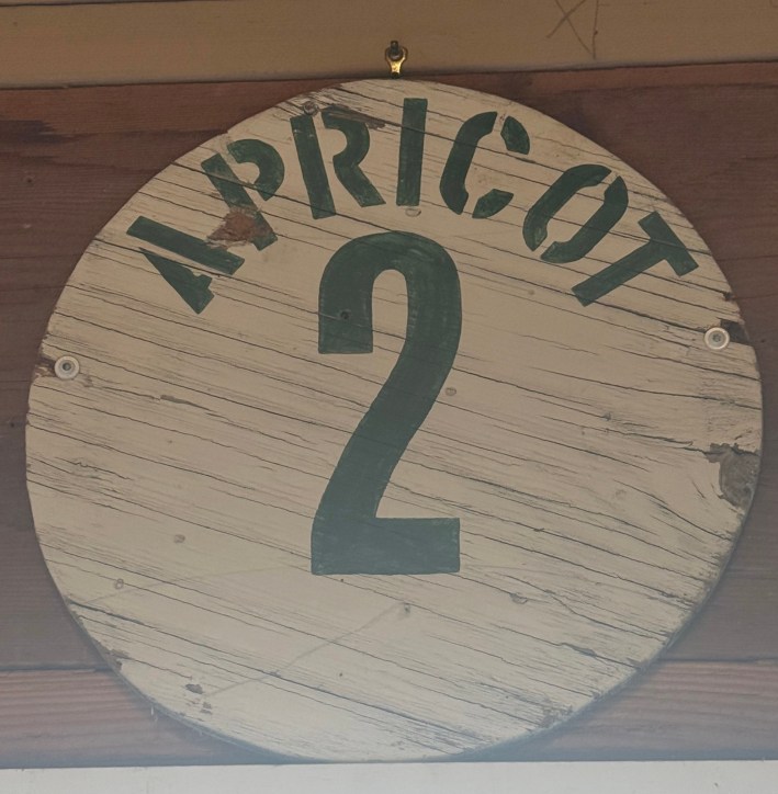 I took the signs. One made its way to Rick Manning, whose recent death is another poignant reminder of what’s missing, in Carmel Valley and the world at large, now that John Gardiner’s Tennis Ranch is gone. “Apricot 2” sits above a door in my garage.